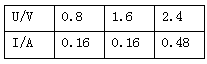 (2)用R1=5Ω的定值电阻做实验,发现当电压表示数分别为0.8V、1.6V、2.4V时,对应电流值分别为0.16A,0.32A和如图电流表的示数。请你在方框内设计表格并将实验数据整理上。