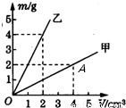 沿图象中纵轴上4cm3处做一条垂线,交甲图象于A点,然后沿A点做横轴的垂线,