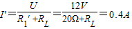 U=U2=U1=I1R1=0.3A×40Ω=12V;