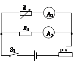 ②闭合开关S,调节滑动变阻器和电阻箱到适当位置。读电流表A1的示数I1;电流表A2的示数I2;电阻箱阻值R,并将I1,R的数据记录到表格中;