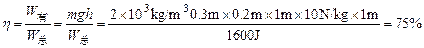⑵若某工人在高1m,长2m的斜面上,以平行于斜面,大小为800N的拉力把物体匀速拉上斜面,如右图所示,则拉力对物体做了多少功?工人的机械效率为多少?