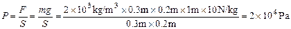 (6分)把一个长30cm、宽20cm、高100cm的长方体物体竖起放在地面上,如下图所示,已知此物体密度为2g/cm3,g=10N/kg。