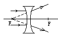 在测图中,平行于主轴的两条光线,画出它们经过凹透镜后的折射光线.