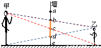 解:过乙头顶和脚底分别作两条直线到甲的眼睛,过甲头顶和脚底分别作两条直线到乙的眼睛(这两条直线就可以确定出所需最小窗的位置),由这四条直线与墙的交点即可确定出所需最小窗的位置应为bd.