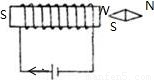 解答:解:电流由正极流向负极,即电流由螺线管的左侧下部流入,由安培定则可得:四指应沿电流方向,即由左侧内部把手插入,由上部指向外侧,则大拇指向右,即磁感线向右,则小磁针N极指向右侧.