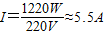 C、额定电流P=UI得,