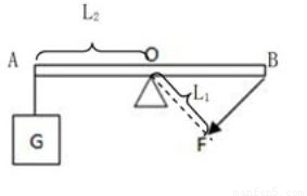 在直角三角形OFB中,直角边小于斜边,即L1<OB,而L2=OA=OB,所以L1<L2,根据杠杆平衡条件可得:G<F.