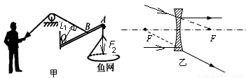 【解析】(1)由图示可知,支点为O.动力为作用在B点的拉力,根据力臂的画法,可以画出动力F1的力臂L1;阻力为渔网的重力,过A点沿重力的方向即可做出阻力力F2的示意图.答案见下图甲所示.
