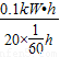 电子式电能表表盘上标有“3000imp/kW.h”字样(“imp/kW.h“是电子式电能表的一个重要参数--“脉冲输出”的单位,其数值表示用电1kW.h表盘上耗电指示灯闪烁的次数),将某用电器单独接在该表上工作20min,电能表指示灯闪烁了300次,该用电器在上述时间内消耗的电能为 kW.h,用电器的电功率是 W.