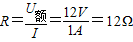 (2)分担电压U1=U-U额=15V-12V=3V,串联电阻