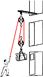 小明家住二楼,正在装修房子.小明想采用如图所示的滑轮组,站在地面上用较省力的方法将装修材料运送到二楼窗口处.