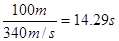 站在百米赛跑终点的计时员,听到起跑的枪声后立即开始计时,测得李明同学百米赛的时间是14.00秒,当时气温15℃,则李明同学跑百米的真实时间是 ( )