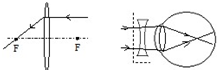 (2)由图中可知:物体的像在视网膜的前方,是近视眼,应用凹透镜矫正.如图: