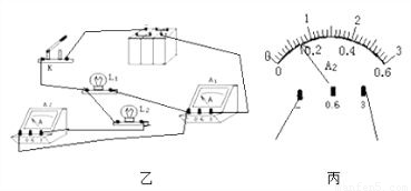 根据图甲所示电路图,若开关K闭合后通过电流表A1的电流为0.9A,通过灯L1的电流为0.2A.(1)将图乙中的各元件按电路图连接起来.