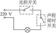 如今,在居民大楼里几乎都有这样的装置:白天光线充足,楼道很明亮时,楼道照明灯是不亮的;到了晚上或者阴雨天,光线很暗时,楼道中只要有声音发出,照明灯就自动发光,过了一会儿,照明灯又会自动熄灭。这样的装置既安全,又能节约用电,受到声音和光的双重控制,能根据需要工作。你知道这个装置的电路吗?给你一个电灯,一个光控开关,一个声控延时开关,请你设计一个电路,将它们接入照明电路中,达到以上效果。
