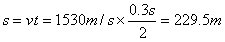 某打捞公司利用声纳测某艘沉船的位置,在海面上通过声纳向海里发出声音,经0.3秒后,接收到反射的声音。问:这艘沉船离打捞船的距离为多少米?(已知声音在海水的传播速度为1530米/秒)