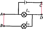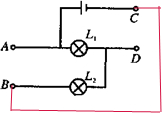 (2)若接线柱A与B连接,接线柱C与D连接,则电路中有两条电流的流通路径,所以灯L1、L2并联,如下图: