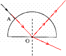 如图5 所示一束光从半球面上的A 点沿半径方向射入半球形玻璃砖,已知半球形玻璃砖的球心为O,且光线到达半球形玻璃砖下表面处时可以发生折射和反射。请画出这束光线从射入玻璃砖到射出玻璃砖的完整光路图。