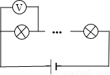 解答:解:方法一:当只有1只电压表时,可用电压表依次并联在各小灯泡两端,当电压表示数约等于电源电压时,这只灯泡的灯丝断路;如图所示
