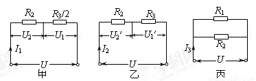 (2)根据丙图表示出总电阻与电阻的关系,即为关系式②;根据欧姆定律分别表示出图乙和图丙中的电流之比,即关系式③;联立①②③得出R1与R2的比值,从而求出R2、R3的阻值.