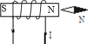 解:小磁针N极向右,因小磁针静止时,N极方向沿磁感线的方向,故螺线管右侧为N极,左侧为S极,由安培定则可知电流应从螺线管的右后方流入,故极性及导线的绕向如图:
