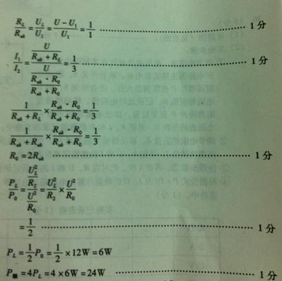 当开关S1S2同时闭合,滑片P滑到a端时,等效电路如图乙所示,图共1分。