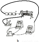 **7.我们利用下列器材研究电流跟电压、电阻之间的关系。按电路图(图15-2)用笔线连接电路(图15-3)。[3.5]