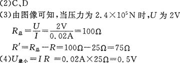 (3)小明希望压力大于或等于2.4×105N时,启动报警系统,则电阻箱R′的电阻应调节到多大?