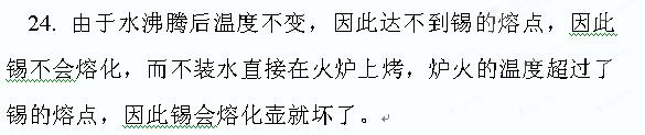 (3)用锡焊的铁壶烧水,壶烧不坏,若壶不装水放在火上烧一会儿就烧坏了这是为什么?