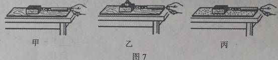 如图7所示,是探究“动能的大小与什么因素有关?”实验的示意图。小球从a处滚下,在c处与小木块碰撞,并与小木块共同运动到d处停下。下面的一些判断正确的是( )