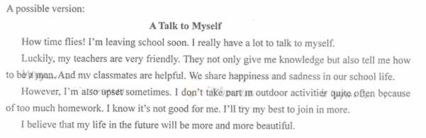 提示:在初三的学习和生活中,你有许多快乐,也有许多遗憾。在即将毕业之际,你想对自己说点什么呢?请根据所给的题目用英语写一篇短文。