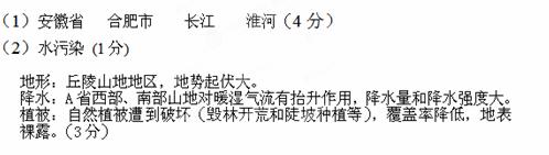 (2)甲、乙两河流域“水脏” 与 密切相关 ,而 “水浑”的最主要原因是水土流失。请结合材料分析A省西部和南部地区水土流失严重的原因。