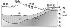 (2)①、②两层构成地壳,其划分的重要依据是什么?陆地地壳和海洋地壳相比较________地壳较厚。