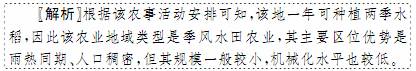 | A.雨热同期 | B.生产规模大 | C.机械化水平高 | D.人口稠密 |