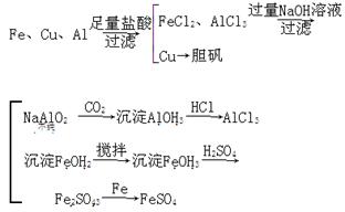 某化学兴趣小组用含有铝、铁、铜的合金制取纯净的氯化铝溶液、绿矾晶体和胆矾晶体,以探索工业废料的再利用。其实验方案如图: