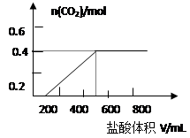 ⑵若以滴加盐酸的体积为V(mL),产生气体的物质的量为n(mol),建立n=f(V)的函数关系,将V在不同取值时,n=f(V)的关系式填入下表并作图