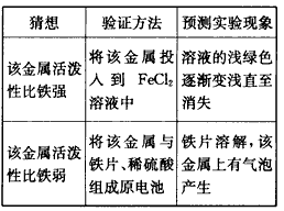 (2)请自选试剂,设计实验探究该金属与铁的活动性强弱,并完成下表: