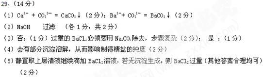 (14分)为除去粗盐中的Ca2+. Mg2+. SO42-以及泥沙等杂质,某同学设计了一种制备精盐的实验方案,步骤如下(用于沉淀的试剂稍过量)![]()