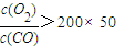 ÒÑÖªt¡æÊ±ÉÏÊö·´Ó¦µÄƽºâ³£ÊýK=200£¬ÎüÈë·Î²¿O2µÄŨ¶ÈԼΪ1.0×10-2mol?L-1£¬ÈôʹcСÓÚcµÄ 1/50£¬ÔòÎüÈë·Î²¿COµÄŨ¶È²»Äܳ¬¹ý______mol?L-1£®
