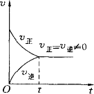 ①在反应即将开始的一瞬间,SO2和O2的浓度处于最大状态,它们合成SO3的速率也处于最大状态,SO3的浓度为0,它分解为SO2和O2的速率也是0,如图所示. ②反应开始后,SO2和O2的物质的量浓度逐渐减小,正反应速率逐渐减小,SO3的物质的量浓度逐渐增大,逆反应速率逐渐增大,如图所示. ③随着时间的延长,SO2和O2的物质的量浓度继续减小,正反应速率继续减小,SO3的物质的量浓度继续增大,逆反应速率继续增大. ④由于化学反应是可逆的,SO2和O2的物质的量浓度不会无限度的减小,而是变为某一个值后保持不变,正反应速率也不会无限度的减小而是变为某一个值后保持不变;SO3的物质的量浓度不会无限度的增大,而是变为某一个值后保持不变,逆反应速率也不会无限度的增大,而是变为某一个值后保持不变. ⑤在可逆反应里,既然是SO2、O2和SO3的物质的量浓度都保持不变,必然是在相同的时间内SO2、O2的生成浓度和减小浓度相等,SO3的生成浓度和减小浓度相等,即正反应速率和逆反应速率相等. |