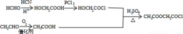 (4)CH3COOCH2COCl中含有酯基,结合信息可知,先由CH3CHO氧化生成CH3COOH,HCHO在HCN、酸性条件下合成HOCH2COOH