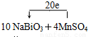 (3)该反应中,NaBiO3是氧化剂,MnSO4作还原剂;MnSO4→NaMnO4,锰元素由+2价→+7价,一个MnSO4失去5个电子;NaBiO3→Bi2(SO4)3,Bi元素由+5价→+3价,生成一个Bi2(SO4)3,需得4个电子,所以其得失电子的最小公倍数为20.