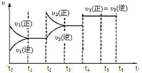 (3)下图为该反应在450℃时的时间—速率图,则t2时刻改变的外界条件可能是 ,若t4时刻将容器压缩至一半(各物质状态不变),保持该条件至t6,请在图中画出t4到t6时间段内大致曲线图,并在相应曲线上标上υ3(正)、υ3(逆)