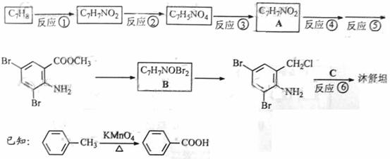 沐舒坦(结构简式为,不考虑立体异构)是临床上使用广泛的。下图所示的是多条合成路线中的一条(反应试剂和反应条件均未标出)完成下列填空:(1)写出反应试剂和反应条件。反应① 反应⑤ 。(2)写出反应类型。反应③ 反应⑥ 。 (3)写出结构简式。A B 。 (4)反应⑥中除加入反应试剂C外,还需要加入K2CO3,其目的是为了中和 。防止 。(5)写出两种C的能发生水解反应,且只含3种不同化学环境氢原子的同分异构体的结构简式。(6) 反应②,反应③的顺序不能颠倒,其原因是 、 。