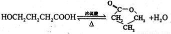 (3)在浓硫酸作催化剂、加热条件下,4-羟基丁酸发生分子内酯化反应生成酯和水,反应方程式为: