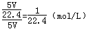 解析试题分析:假设烧瓶体积为5V,则干燥纯净的氨气体积为5V完全溶于水后烧瓶充满溶液溶液体积也是5V,溶质物质的量浓度为: