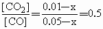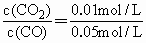 [CO]=0.05 mol·L-1-0.01 mol·L-1=0.04 mol·L-1