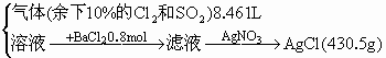 用密度为1.18g/cm3 36%的盐酸与足量的二氧化锰反应,使产生的气体通入500mL亚硫酸钠溶液中(气体吸收了90%),同时收集到8.461L(标准状况下)混合气体.向该溶液中加入过量的4mol/L氯化钡溶液200mL,过滤,再向溶液中加入足量硝酸银,结果得到白色沉淀430.5g.求:①多少毫升盐酸被氧化?②原亚硫酸钠的物质的量浓度是多少?