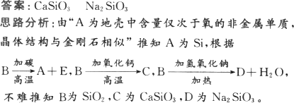 评新理念:本题以框图题的形式考查Si及其化合物的有关知识,侧重考查审题能力、分析推理能力和综合运用知识解决问题的能力. 误区突破:框图推断题关键是找准“切入点”,本题的切入点为A及B与A、C、D的转化关系及条件. |