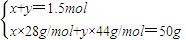 (2)设CO的物质的量为x,CO2的物质的量为y,